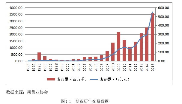 根據(jù)中國期貨市場歷史成交數(shù)據(jù)統(tǒng)計(圖 1.1),可以發(fā)現(xiàn)中國期貨市場是經(jīng)歷了快速增長后蕭條,繼而穩(wěn)步增長。中國引入期貨以來,中國期貨行業(yè)經(jīng)歷了 4 個發(fā)展階段。1993 年~1995 年,由于缺乏監(jiān)管以及國內(nèi)對期貨行業(yè)的認知空白性,期貨行業(yè)產(chǎn)生虛假繁榮,這段增長與不規(guī)范的地下交易和惡性投資直接相關。1996 年~2001 年,由于不規(guī)范的運作,期貨行業(yè)產(chǎn)生了多起事故,國家對期貨行業(yè)進行規(guī)范整頓,期貨交易所由最初十四所減少到三所,期貨公司由三百多家縮減至不足兩百家,成交量額從 1995 年的峰值萎縮到底部。2001 年~2010 年,規(guī)范整頓后,隨著對期貨產(chǎn)品的重新認知,政府對期貨行業(yè)的發(fā)展采取了政策性支持,期貨市場的成交量、額穩(wěn)步增長。2010 年股指期貨上市,中國自此開始有了金融期貨產(chǎn)品,期貨市場發(fā)展有了質(zhì)的突破。期貨市場的買賣雙向性、交易費用低、杠桿作用大等交易特征,使投資者可以在期貨市場進行投資或投機活動。相較于股票市場只能先買入再進行該股票的賣出,期貨市場能夠雙向操作,既能夠買入期貨合約做多,也可以賣出期貨合約做空。期貨合約價格進行向上或向下波動,投資者均能夠找到機會,獲得盈利。在中國剛引入期貨市場時,一方面由于國家擔心期貨市場交易者少,期貨交易不活躍,另一方面國家對期貨市場監(jiān)管處于空白區(qū),所以使得大量的投機商參與,這些投機商無貨沽空,進行大量投機行為,導致期貨市場異常混亂,甚至帶來整個經(jīng)濟市場的動蕩。 隨著政府對期貨市場的“降溫”以及對期貨市場的重新認知,期貨市場的本質(zhì)被重新重視并接受。1848 年,82 位芝加哥的商人作為發(fā)起人,促成芝加哥期貨交易所建立、期貨交易的誕生。當初創(chuàng)建期貨市場的目的是為了規(guī)避谷物在未來某一時間價格變動的不確定性。發(fā)起人的身份說明了期貨交易的根本就是為現(xiàn)貨貿(mào)易進行補充、服務的。現(xiàn)貨是即時的買賣,期貨是未來的交易,兩者沒有本質(zhì)的區(qū)別,增加期貨市場之后,買賣雙方在對期貨和現(xiàn)貨市場進行比較后,能夠選擇價格更有優(yōu)勢的市場進行交易。 對期貨的本質(zhì)和作用有了重新的認識之后,政府不再一味制止期貨發(fā)展,開始出臺政策鼓勵期貨市場健康發(fā)展。而出于對期貨本質(zhì)的接受以及對其規(guī)避價格風險的認知,以現(xiàn)貨為背景的集團企業(yè)對期貨市場產(chǎn)生了需求。現(xiàn)貨企業(yè)雖然了解現(xiàn)貨的屬性,但是因為現(xiàn)貨是以固定方法去處理,而期貨有著其與現(xiàn)貨不同的金融屬性,同時還有著市場上的過度炒作的特色,所以如果將現(xiàn)貨的固有思維直接搬到期貨市場上,不僅僅做不好風險規(guī)避,反而會產(chǎn)生不必要(不涉及期貨市場)的虧損。在這種政府鼓勵、現(xiàn)貨企業(yè)激發(fā)需求的背景下,期貨公司開始重視對于產(chǎn)業(yè)客戶服務的研究。