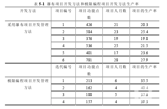 5.1 傳統項目開發和極限編程項目開發的項目生產率