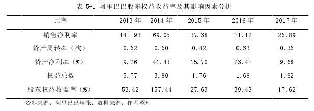 利潤是企業經營的最終目的,因此在對企業盈利模式進行衡量時最好的辦法是對它的盈利性進行分析,并選取同行業的競爭對手與目標公司進行交叉對比,從兩者的收入與現金流來評價哪一家公司更具有競爭優勢,從而得出一個更值得借鑒學習的盈利模式。本文從收入和現金流兩個方面出發,借助杜邦分析法對阿里巴巴的盈利現狀及現金流進行了深入系統的分析。下述分析都是基于公司2013-2017 財年所公布的數據進行的,以期對阿里巴巴這個階段的盈利模式進行評價與衡量。