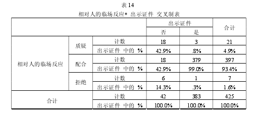 就理論層面而言,盡管學界對盤查屬性的探討沒有達成一致意見,但爭論的范圍不是漫無邊際的,而主要限定在行政行為說、刑事司法行為說以及中間行為說三種觀點之間。本文在對比分析以上三種學說的基礎上,認為盤查不是單純的行政行為或司法行為,而是一種介于行政行為與刑事司法行為的中間行為。至于盤查最終具有行政屬性還是刑事司法屬性,則要視盤查取得的證據在行政強制或行政拘留嫌疑人與刑事追訴嫌疑人中所起作用的大小。如果盤查中收集的證據對嫌疑人產生不利的行政法律后果,那么盤查屬于行政行為;如果這種證據對嫌疑人產生了刑事追訴的效果,那么盤查就是刑事司法行為。總之,筆者希望前述認定盤查屬性的標準可以為以后有關盤查的研究提供一定的借鑒。對盤查實務而言,本文采用問卷調查法、訪談法、實地觀察法就 S 省 N 市警察盤查實務展開調研,從多角度來研究警察盤查的現狀,分析、總結盤查實務中的經驗與教訓,以保障民警規范、理性、文明、平和地盤查,降低非法或不當盤查現象的發生,提升社會民眾對盤查制度的了解與信任,主動、積極地配合盤查執法,從而更好地維護國家安全、社會秩序以及公民人身、財產安全。誠然,盡管調查報告最多僅能反映 S 省 N 市的盤查基本情況,但對提升我國其他地區警察盤查的合法、文明水平仍具有一定的借鑒意義。