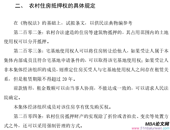 第四章 完善農(nóng)村住房抵押制度的具體建議