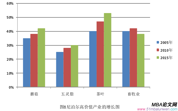 高價值產品(HVPs)指的是半加工或深度加工的農業商品,例如果脯蜜餞,以及未經過加工的而且單位價值高的產品,例如新鮮水果。發展中國家的一些傳統的出口商品也被認為是高價值產品,包括咖啡和可可豆。高價值產品被分成三種類型:半加工的,深度加工的和原始未加工的。其中兩類經過加工產品在出口和國內銷售之前,要符合產品轉型的程度要求。半加工的產品,如植物油,只經歷了中級加工處理流程,這種產品通常需要消費者根據自己不同的需求再度加工才能成為最終產品而食用。深度加工的產品,比如肉罐頭和魚罐頭,是經過更廣泛的加工,通常對于這類產品消費者是可以直接食用的。原始未加工的產品是指那些單位價值高的商品但是卻幾乎未經過任何加工。高價值產品能夠被分成三個群組:1) 半加工產品,如鮮肉和冷凍肉,面粉,植物油,烘焙咖啡,精制糖等。2) 深加工產品,消費者可直接食用。如牛奶,奶酪,葡萄酒,早餐麥片等。3) 未加工產品,通常也是可以直接食用的。如新鮮水果和水果干,新鮮蔬菜和蔬菜干,雞蛋,堅果等。農業在尼泊爾扮演者非常重要的角色,尼泊爾有許多產品都可以被歸類為高價值產品。在吉爾吉特-巴爾蒂斯坦地區,有 50%以上的農戶靠種植杏,櫻桃,無花果,李子,桃子,松子,核桃,沙棘,野生百里香,孜然,洋甘菊,甜葉菊,五靈脂等作物為生。除了上述的這些產品以外,還有一部分農民靠種植其他一些高價值產品來保障他們的基本生活,包括生姜,黃姜,尼泊爾麻椒,咖啡,傳統茶葉,豆蔻,蜂蜜,藥用植物和芳香植物包括冬蟲夏草等。舉例來講,在咖啡的產業價值鏈中,在 2014-2015 財政年度,有 3 萬多個農戶總共生產出 524 噸咖啡,其中65%被尼泊爾政府用于出口。同樣地,尼泊爾每年要生產 4500 噸高質量的傳統茶葉,以滿足高價值產品市場需求。在豆蔻的種植方面亦是如此。大豆蔻的生產給農民帶來非常可觀的收入。根據貿易和出口鼓勵中心統計的數字,在 2013-2014財政年度,尼泊爾總共出口了 4900 多噸大豆蔻,價值 42.7 億尼泊爾盧比。