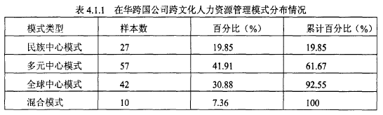 4.1在華跨國公司跨文化人力資源管理模式的類型和分布情況