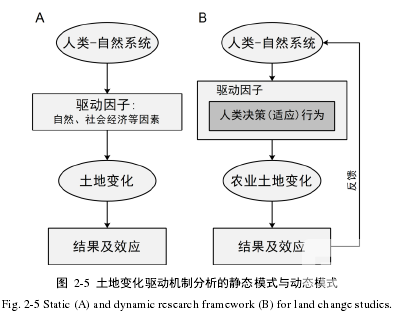 自 20 世紀 90 年代以來,國際地圈生物圈計劃(IGBP,The InternationalGeosphere-BiosphereProgramme)與國際全球環境變化人類行為計劃(IHDP,The International Human DimensionsProgramme)共同執行土地利用/覆蓋變化研究(LUCC,Land-Use and Land-Cover Change)與后續全球土地計劃(GLP,GlobalLandProject),極大促進了“土地(系統)科學”的誕生與發展(Gutman et al.,2004;Rindfuss et al.,2004;Global Land Project,2005;Aspinall,2006;Turner II et al.,2007;Reenberg,2009;Rounsevell et al.,2012)。作為土地科學的重要組成部分,農業土地系統研究的核心目的在于理解和解釋農業生產過程中的“人類—自然”綜合復雜關系,進而為可持續農業發展提供科學服務(Bezlepkina et al.,2011)。主要研究內容包括時空格局探測(Patten)、變化過程模擬(Process)、以及綜合效應分析(Consequence)等方面。?