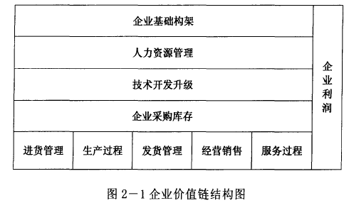 “價值鏈”理論是由邁克爾·波特教授提出的,他認為企業是一個綜合了設計、生產、銷售、運送和管理等活動的合體,它創造價值的過程可以分解為一系列互不相同但又互相關聯的增值活動,總和即為“價值系統”(如圖2一1)。其中每項經營管理活動就是這一“價值系統”的價值鏈。邁克爾·波特認為,企業的每項生產經營活動都可以創造價值,這些相互關聯的活動便構成了創造價值的一個動態過程,即價值鏈。它可以形成企業最優化、最協調的競爭優勢,如果企業所創造的價值超過其成本,便有盈利:如果超過競爭者,便擁有更多的競爭優勢和市場。
