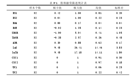 (1)首先進行描述性統計分析,對樣本數據的構成、變量的分布進行初步分析。概括反映變量之間的關系。對股權結構給并購融資方式產生的影響有初步了解。