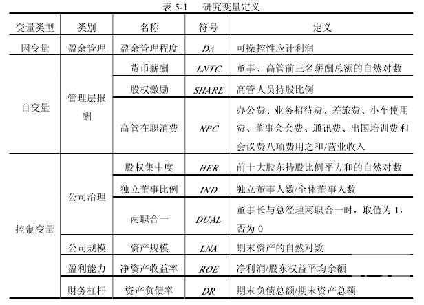 4 管理層報酬與盈余管理關(guān)系的理論分析與研究假設(shè) ...... 19
