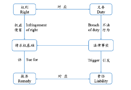 在探討侵害權益得利及其返還之前,我們有必要對私法中的“權利-義務”、“救濟-責任”的構造體系稍作梳理,再將其還放入這一構造中,以明確相關概念。根據民法基本理論,一人之權利(right)對應的是他人之義務(duty),這里的義務既可能是積極、又可能是消極的,既可能是法定的、又可能是約定的。而一人的不法行為(wrong),作為或不作為,是對其義務的違反(breach of duty),并同時形成對他人權益的侵害(infringement of right)。進而,如果行為人的不法行為滿足了某一法律事實的構成要件,則權利人可依據相應的請求權基礎(Anspruchsgrundlage)或訴因(causes of action)向法院主張救濟(remedy),相對地,行為人則因其違反義務之不法行須為承擔法律責任(liability)。此構造如下圖: 在框架中,責任是法律關系一方主體違反自身義務或侵犯他人權利時,依照法律應承擔的強制性法律后果;這種強制性法律后果,在大陸法系被稱為一種“債”,而在英美法系被稱為一種“救濟”。① 如果把侵害權益得利這一法律事實放入上圖的框架中,那么行為人因其侵害他人權益的行為而獲得了利益,違反了法定的不作為義務,因此應承擔得利返還的責任;而對權利人而言,其權益因為行為人的侵害行為而受到損害,因此可以主張得利返還之救濟。但這一“侵害權益得利—得利返還”的構造,尚需解決兩個根本性問題,第一,得利返還救濟/責任承擔方式的正當性問題,即為什么侵害權益得利之法律事實可以引發法律上的返還效果;第二,如果可以引發得利返還,那么得利返還的請求權基礎是什么。在探討這兩個根本性問題之前,我們首先要對所謂侵害權益得利行為進行充分的理解,并明確其在現有法律概念體系中的坐標。