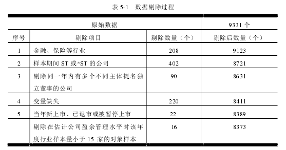 (2)剔除樣本期間 ST 和 ST*的公司。這些公司的財務(wù)情況存在問題,不能如實(shí)反映真實(shí)的情況;